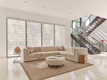 Zebra blinds, also known as banded shades, layered shades or highlight shades, are a type of window treatment that features alternating horizontal bands of sheer and opaque fabric. These bands are attached to a roller mechanism, allowing you to adjust the position of the fabric to control the amount of light and privacy. When the opaque bands align, they block light and provide privacy, similar to traditional roller shades. When the sheer bands align, they allow light to filter through while still providing some level of privacy.